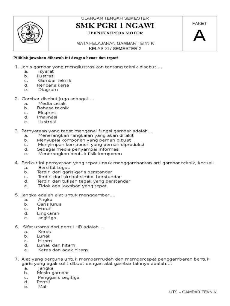 Soal Isir Gambar Teknik Otomotif: Soal pilihan ganda gambar teknik dan jawabannya.